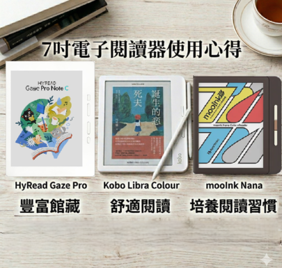 這篇文章會介紹的是 ─ HyRead Gaze Pro Note C、Kobo Libra Colour、mooInk Nana。