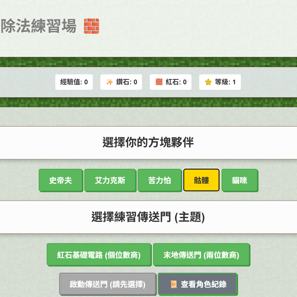 為了提供需要熟練的孩子一個適合的練習平台,並且增加孩子學習的動機,因此在設計上,融入 Minecraft 的元素。