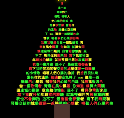 2025-12-212025-12-24 文字聖誕樹產生器 ─ 歌詞、唐詩、數學公式,都可以生成聖誕樹!來做一張特別的聖誕祝福吧! 想做一張專屬的聖誕卡片嗎? 想用自己喜歡的文字組成一棵聖誕樹嗎? 來試試這個「文字聖誕樹產生器」。 Read More
