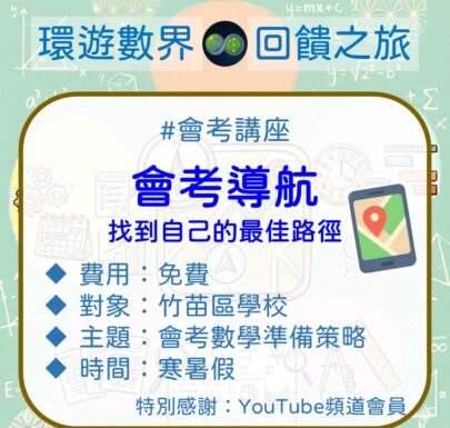 2026-01-032026-01-08 免費會考數學講座申請 ─ 會考導航 找到自己的最佳路徑 這幾年,一直有個想法: 「想到偏鄉服務,提供小校更多資源。」 既然調校很麻煩,那就換個做法吧! Read More