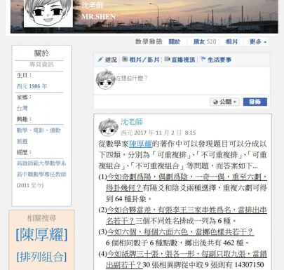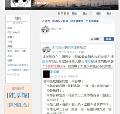 2018-02-092018-04-03 離散數學-排列組合3:書裡的問題 by 陳厚耀 沈老師系列:看數學史學數學 離散數學-排列組合3:書裡的問題 by 陳厚耀 本文轉貼自「沈老師系列:看數學史學數學」,歡迎加入粉絲團。 https://www.facebook.com/mathteache... Read More