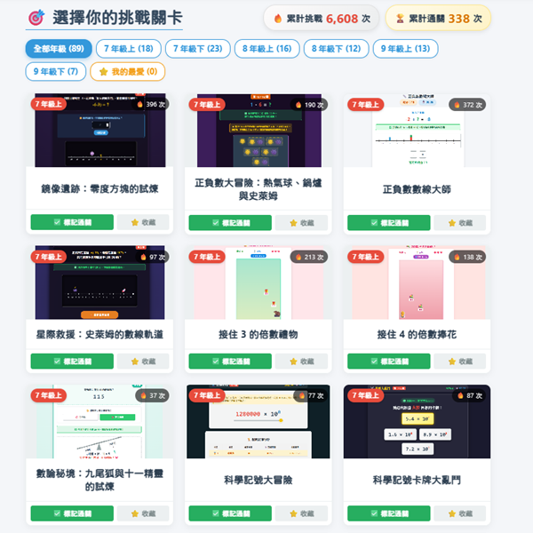 YLL數學互動遊戲大廳 ─ 涵蓋國中數學所有單元的線上數學遊戲庫
